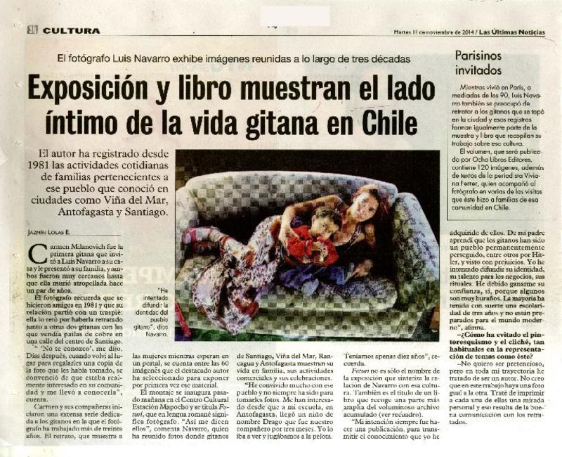 Exposición y libro muestran el lado íntimo de la vida gitana en Chile [artículo] Jazmín Lolas E.