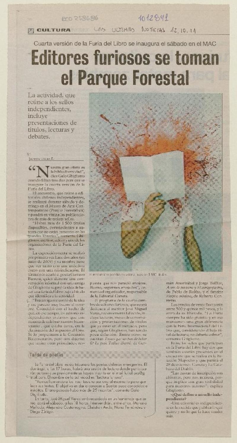 Editores furiosos se toman el parque Forestal [artículo] Jazmín Lolas E.