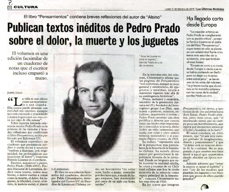 Publican textos inéditos de Pedro Prado sobre el dolor, la muerte y los juguetes [artículo] Jazmín Lolas.