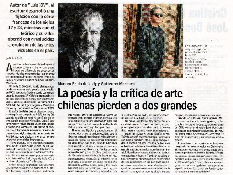 La poesía y la crítica de arte chilenas pierden a dos grandes [artículo] Jazmín Lolas
