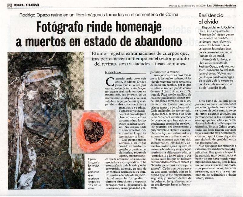 Fotógrafo rinde homenaje a muertos en estado de abandono [artículo] Jazmín Lolas.