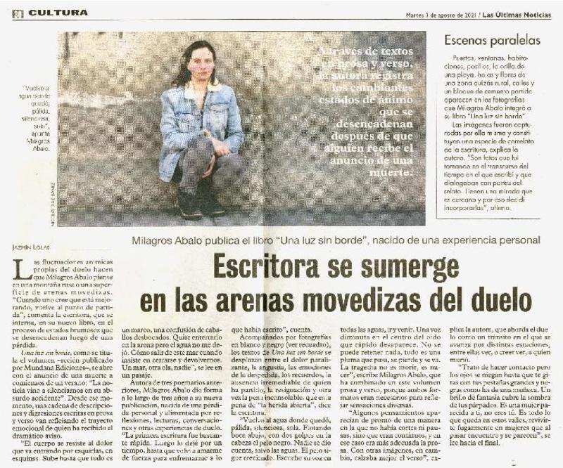 Escritora se sumerge en las arenas movedizas del duelo [artículo] Jazmín Lolas.