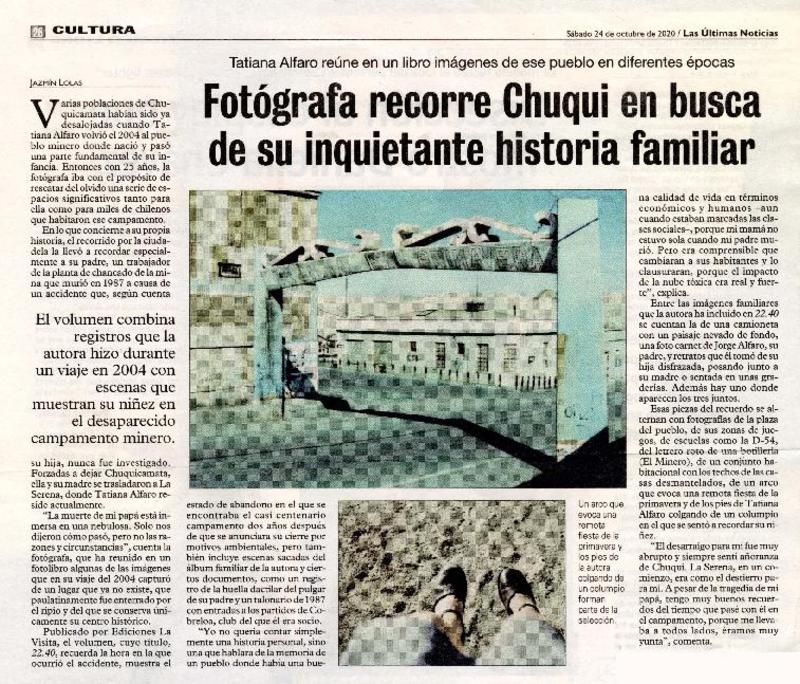 Fotógrafa recorre Chuqui en busca de su inquietante historia familiar [artículo] Jazmín Lolas.