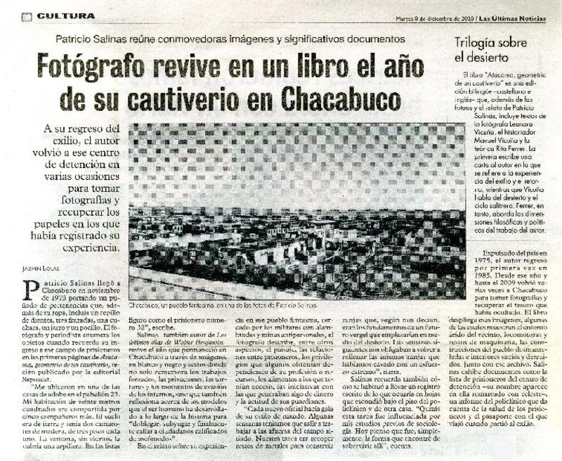 Fotógrafo revive en un libro el año de su cautiverio en Chacabuco [artículo] Jazmín Lolas.