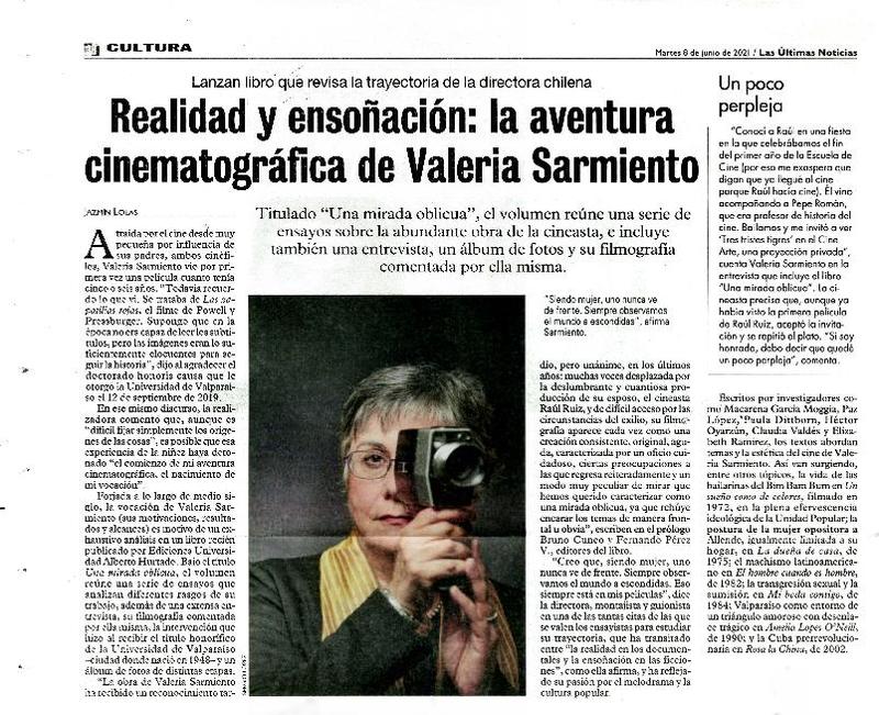 Realidad y ensoñación : la aventura cinematográfica de Valeria Sarmiento [artículo] Jazmín Lolas.