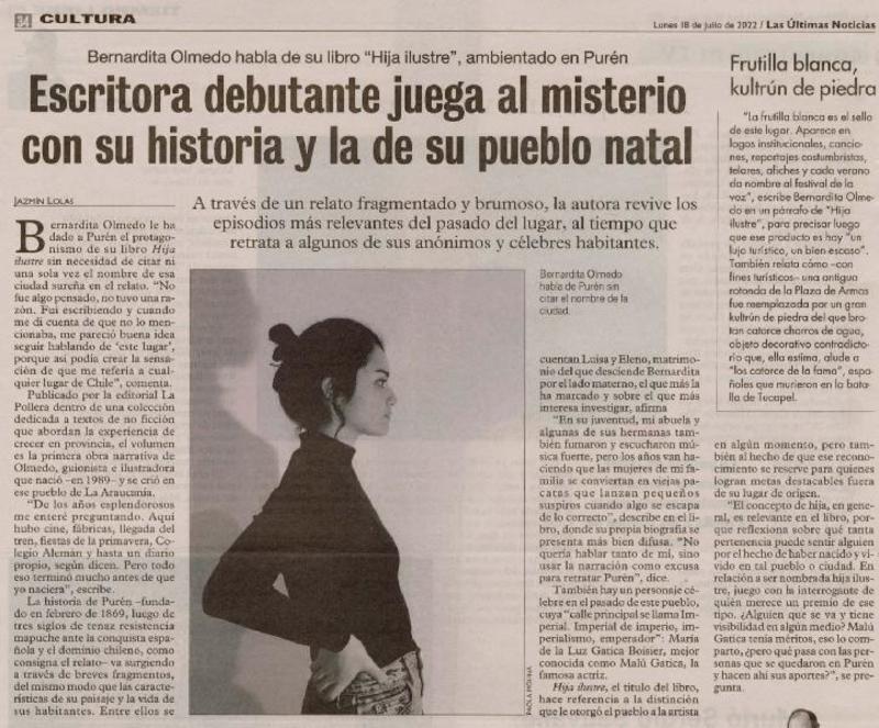 Escritora debutante juega al misterio con su historia y la de su pueblo natal [artículo] Jazmín Lolas.