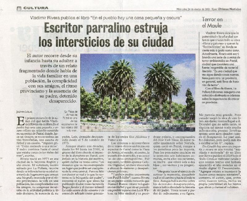Escritor parralino estruja los intersticios de su ciudad [artículo] Jazmín Lolas.