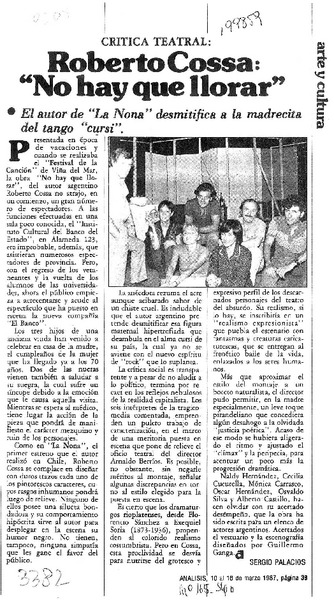 Roberto Cossa, "No hay que llorar" [artículo] Sergio Palacios.