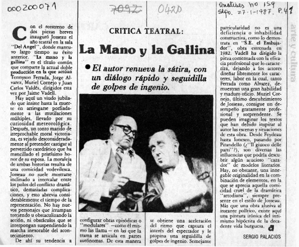 Estrenos críticos y autocríticos [artículo] Sergio Palacios.