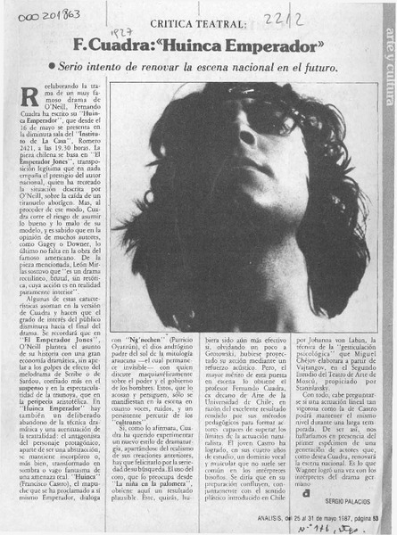 F. Cuadra, "Huinca Emperador" [artículo] Sergio Palacios.