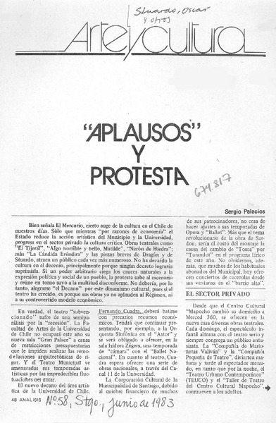"Aplausos" y protesta [artículo] Sergio Palacios.