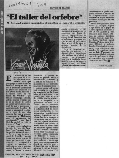 "El taller del orfebre" [artículo] Sergio Palacios.