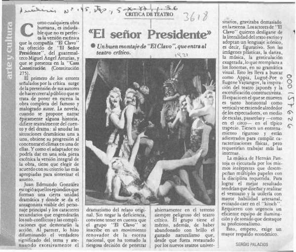 Notas de teatro y ballet [artículo] Sergio Palacios.