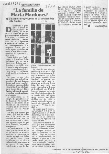 "La familia de Marta Mardones" [artículo] Sergio Palacios.
