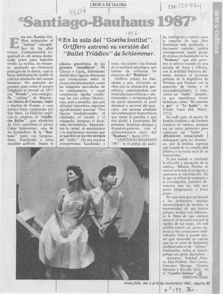 "Santiago-Bauhaus 1987" [artículo] Sergio Palacios.