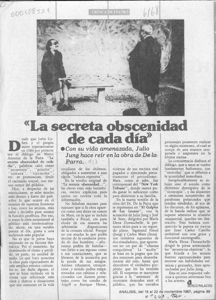 "La secreta obscenidad de cada día" [artículo] Sergio Palacios.