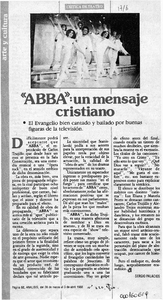 "Abba", un mensaje cristiano [artículo] Sergio Palacios.