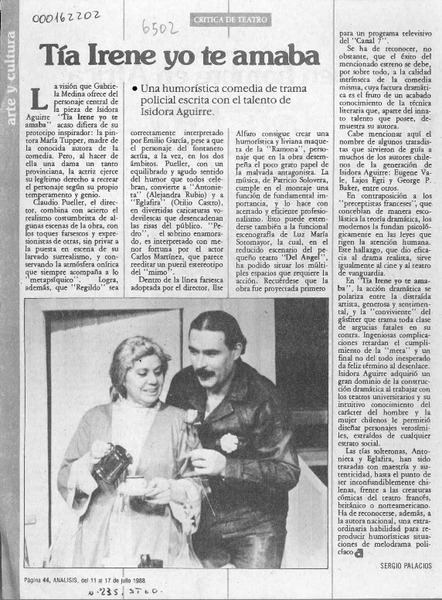 Tía Irene yo te amaba [artículo] Sergio Palacios.