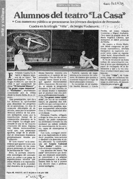 Alumnos del teatro "La Casa" [artículo] Sergio Palacios.