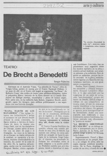 De Brecht a Benedetti [artículo] Sergio Palacios.