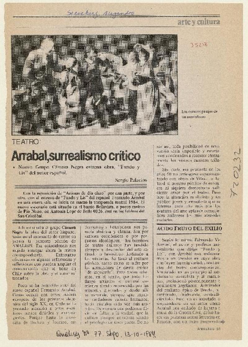 Arrabal, surrealismo crítico [artículo] Sergio Palacios.