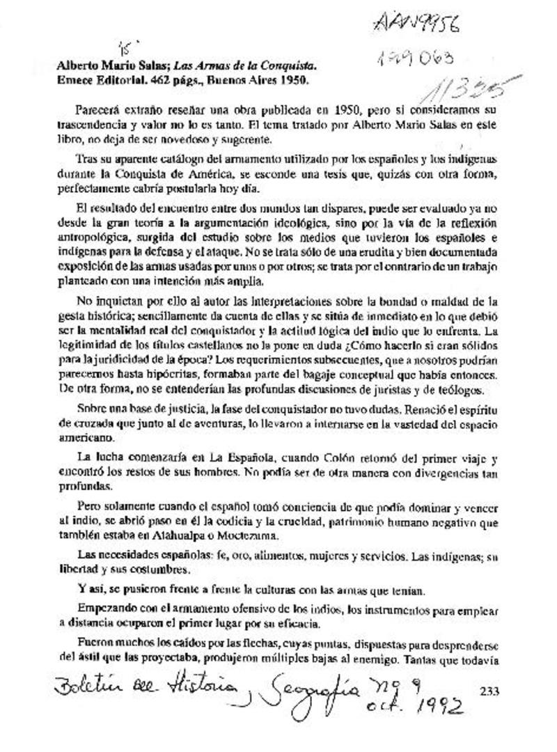 Las armas de la conquista [artículo] Luis Carlos Parentini.