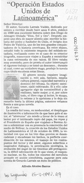 "Operación Estados Unidos de Latinoamérica" [artículo] Alfredo Alcaíno Barros.