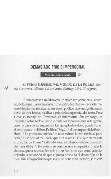 Demasiado frío e impersonal [artículo] Ricardo Rojas Behm.