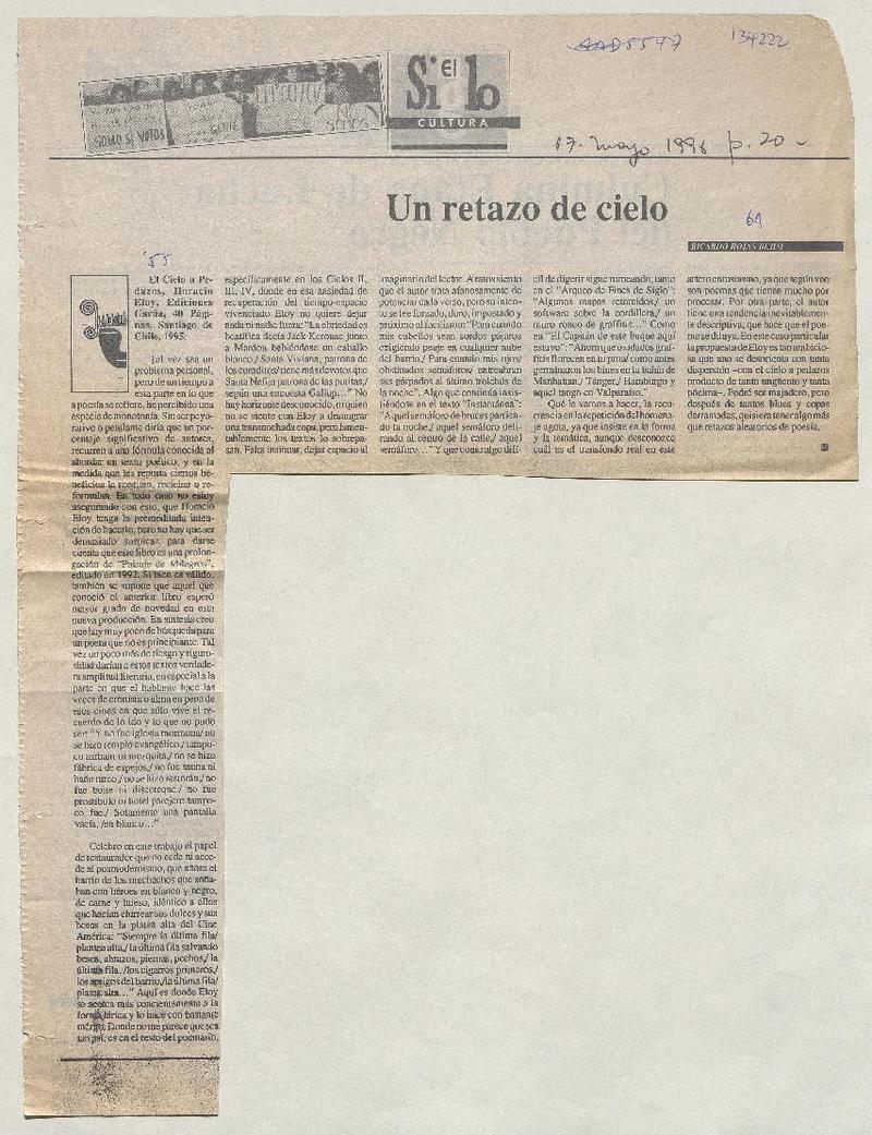 Un retazo de cielo [artículo] Ricardo Rojas Behm.