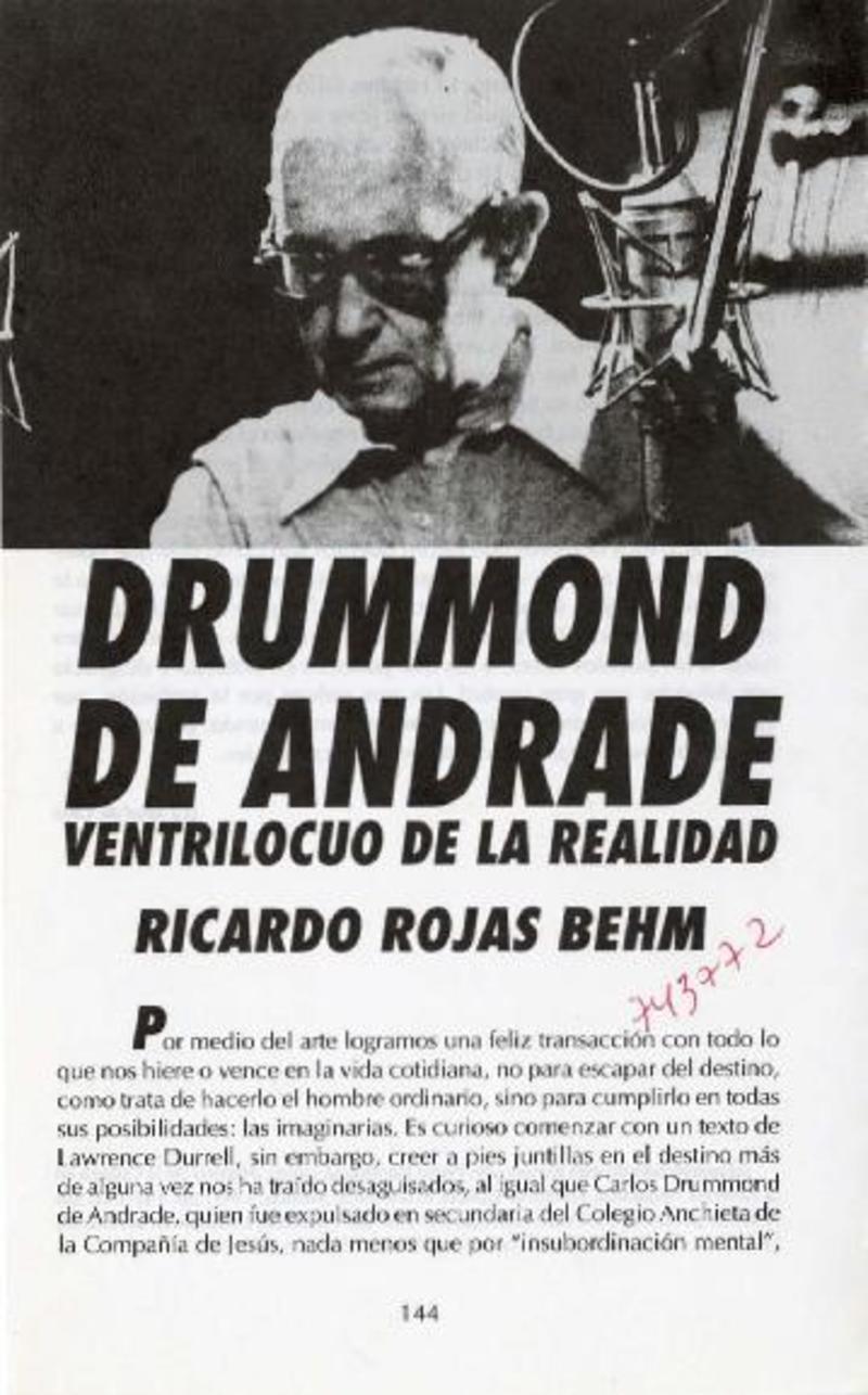 Drummond de Andrade, ventrilocuo de la realidad [artículo] Ricardo Rojas Behm.