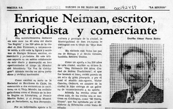 Enrique Neiman, escritor, periodista y comerciante [artículo] Omar Parra Reina.