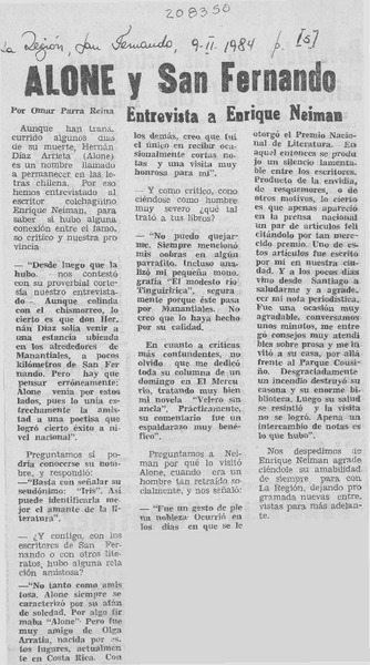 Alone y San Fernando, entrevista a Enrique Neiman [entrevista] [artículo] : Omar Parra Reina.