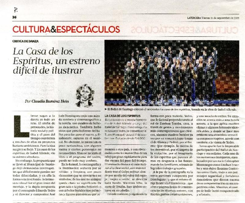 La casa de los espíritus, un estreno difícil de ilustrar [artículo] Claudia Ramírez Hein.