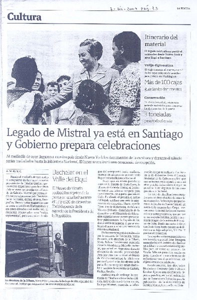 Legado de Mistral ya está en Santiago y Gobierno prepara celebraciones [artículo] A.M.H./R.C.