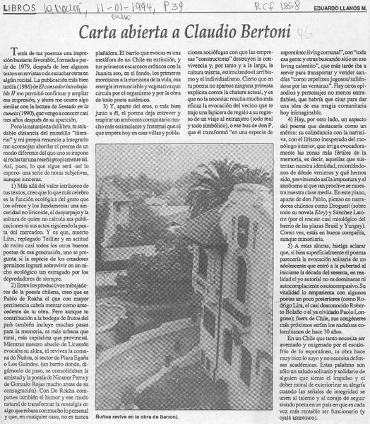 Carta abierta a Claudio Bertoni [artículo] Eduardo Llanos M.