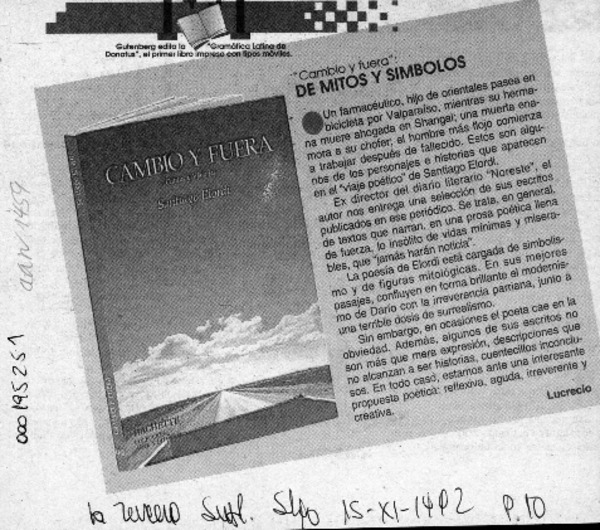 "Cambio y fuera", de mitos y símbolos [artículo] Lucrecio.