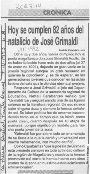 Hoy se cumplen 82 años del natalicio de José Grimaldi [artículo] Andrés Vidal de la Jara.