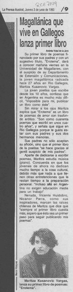 Magallánica que vive en Gallegos lanza primer libro [artículo] Andrés Vidal de la Jara.
