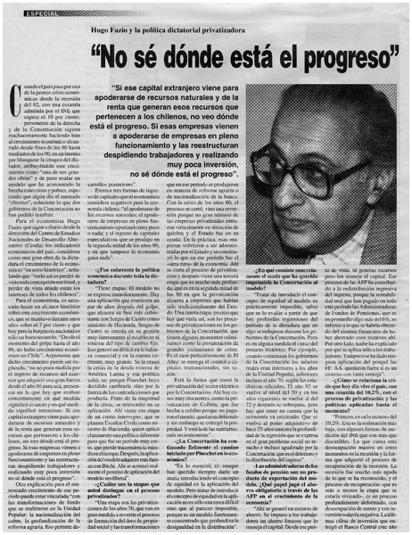 No sé dónde está el progreso": [entrevistas] [artículo] A.M.