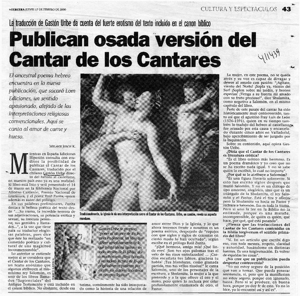 Publican osada versión del Cantar de los cantares [artículo] Melanie Jösch K.