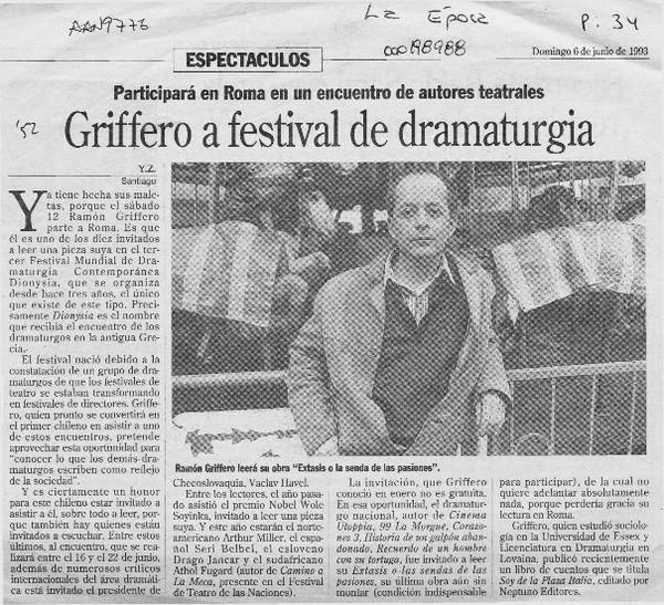 Griffero a festival de dramaturgia [artículo] Y. Z.