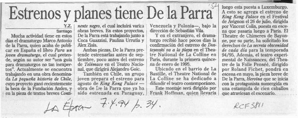 Estrenos y planes tiene De la Parra [artículo] Y. Z.