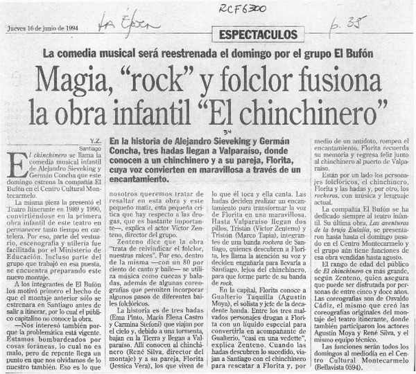 Magia, "rock" y folclor fusiona la obra infantil "El chinchinero" [artículo] Y. Z.
