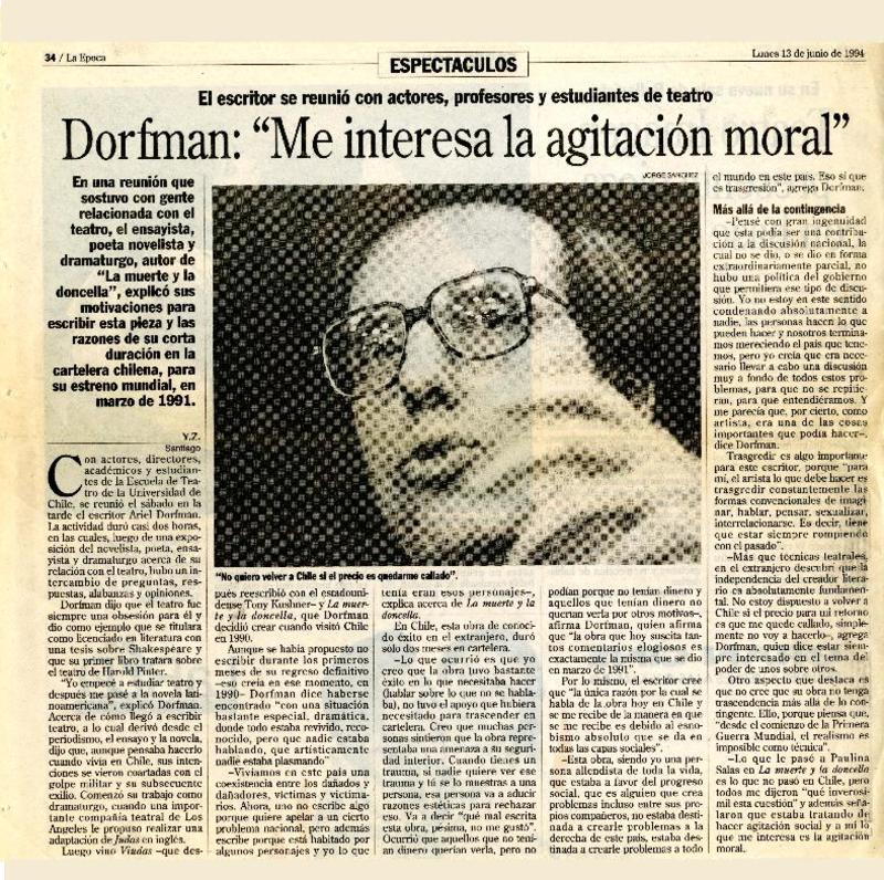 Dorfman, "Me interesa la agitación moral" [artículo] Y. Z.
