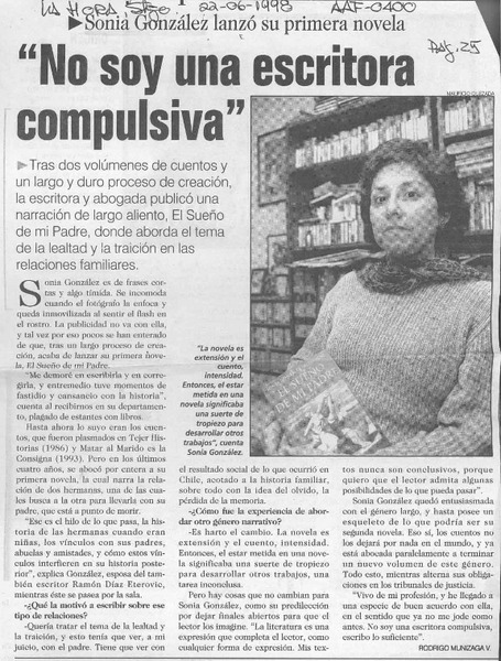 "No soy una escritora compulsiva" [artículo] Rodrigo Munizaga V.