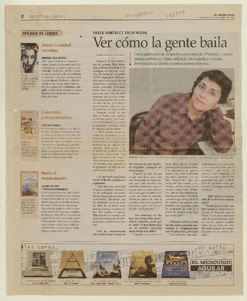 Autoras chilenas - Entrevista - González, Sonia - Imperfecta desconocida
