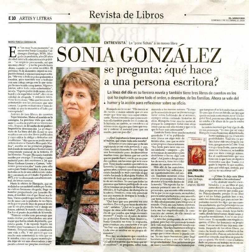 Autoras chilenas - Entrevistas - González, Sonia - "La línea del día"