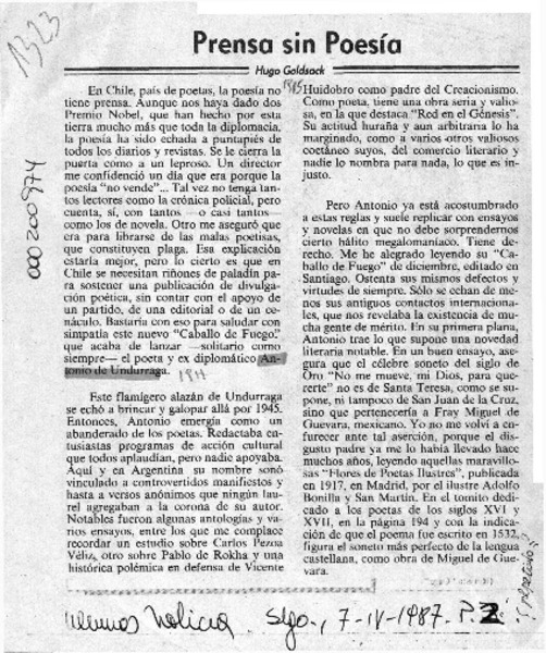 Prensa sin poesía [artículo] Hugo Goldsack.