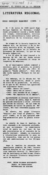 Hugo Enrique Ramírez (1929- ) [artículo] Oscar Paineán Bustamante.