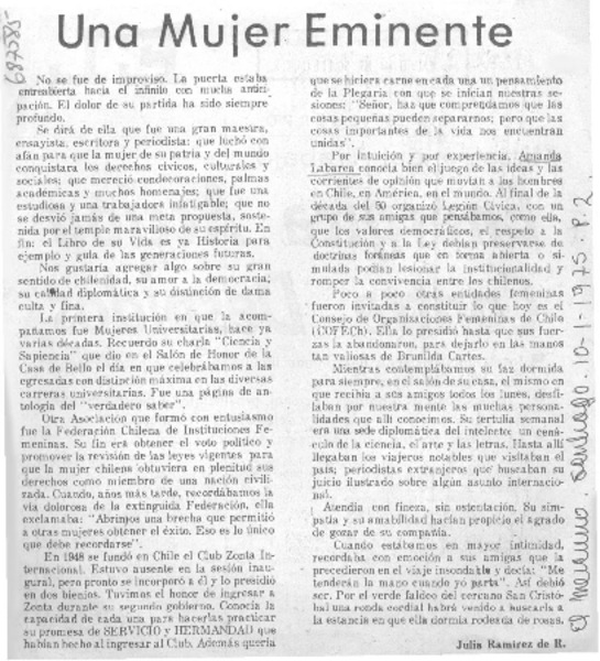 Evocación de Amanda Labarca [artículo] Julia Ramírez de Romero.